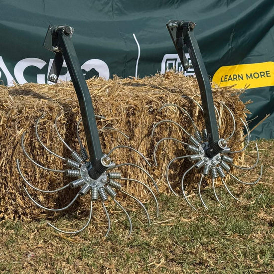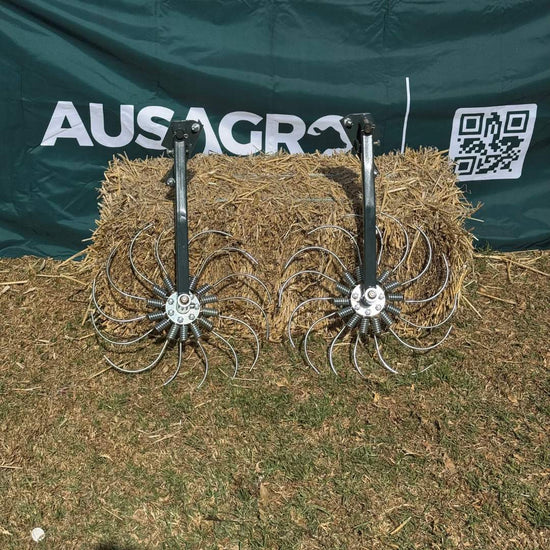 Boost the performance of your Mini Round Hay Baler with this Rake Wheel Attachment Set. Designed to widen the pickup path and guide hay more evenly into the baling chamber, these spring-loaded rake wheels help reduce blockages and improve overall baling efficiency. Easy to install and built tough for Australian conditions, they’re the perfect upgrade for smoother, cleaner baling.